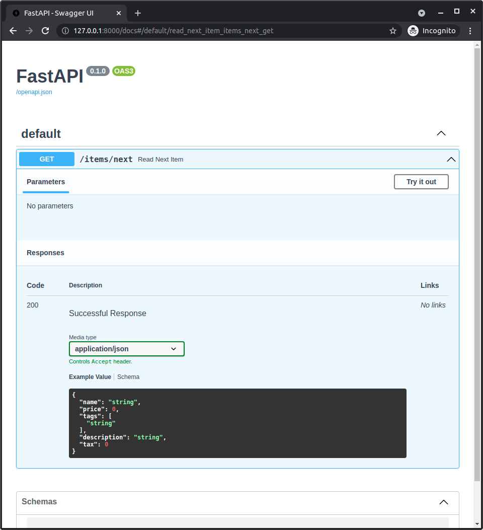 items的字典,items是一个数据类的列表。FastAPI 仍然能够将数据序列化为 JSON。