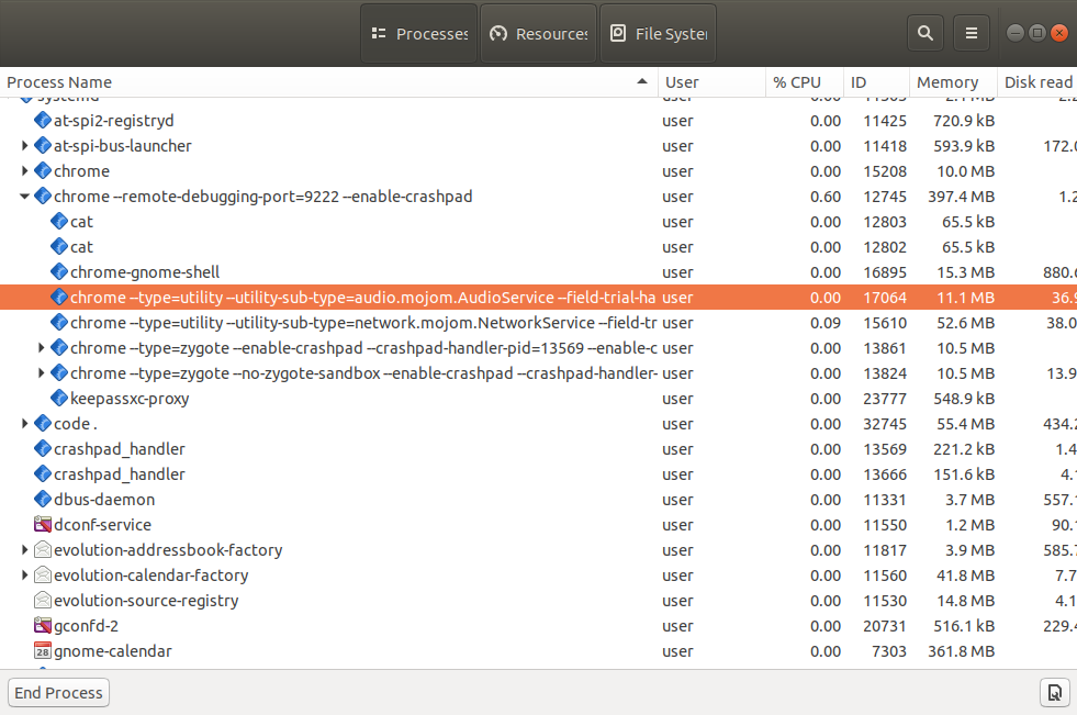 一个有趣的细节是,每个进程使用的 CPU 百分比 可能随时间 变化很大,但 内存(RAM) 通常保持或多或少 稳定。