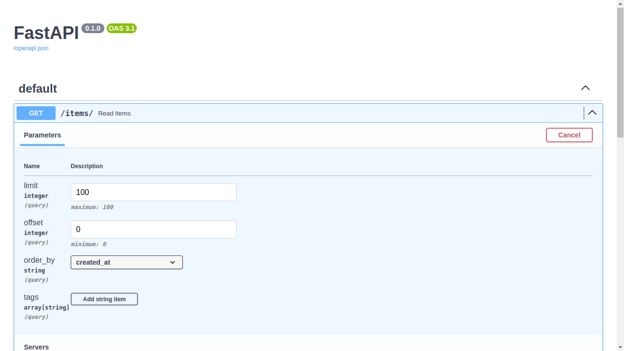 limit: int = Field(100, gt=0, le=100)